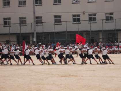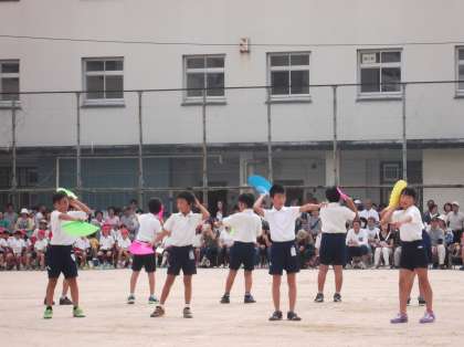 晴天にも恵まれ、運動会が始まりました。どの学年の子どもたちも、精一杯頑張っていました。午前の部では、大玉運びや綱引きなどを行いました。団体演技は1・2・4・5年がダンスを披露しました。