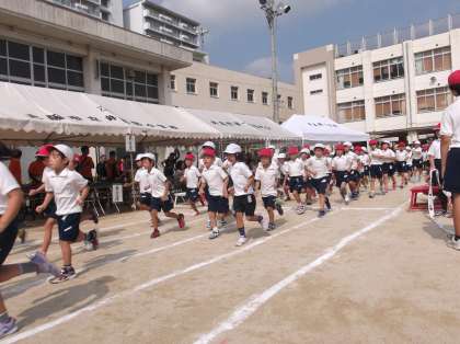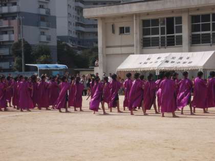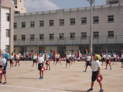午後からは、玉入れや台風の目などを行いました。団体演技は3・6年が披露しました。
