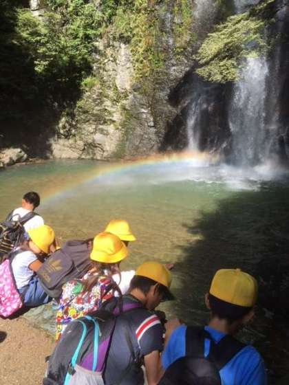 子どもたちは、圧倒的な滝のスケールに驚いていました。