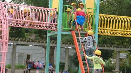 10月12日。大阪城公園に着きました。早速、たくさんの遊具で遊びだしました。元気いっぱいです。