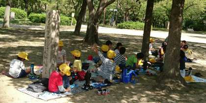 お待ちかねのお弁当です。秋晴れの空のもとで、食べるお弁当の美味しいこと!