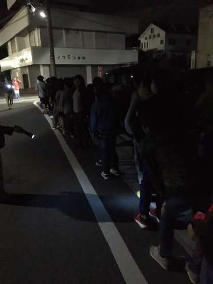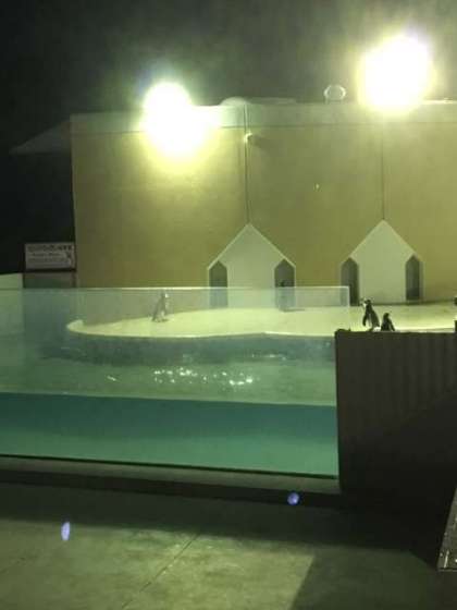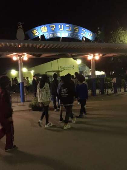 夕食後、マリンランドへ向かいました。道中はライトで道を照らしながら歩いていきました。