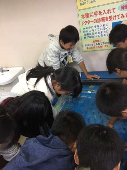 いろいろな生き物がたくさん展示されていました。ふれあいタッチコーナーでは、サメやエイ、ドクターフィッシュなどにさわっていました。