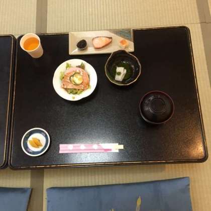 部屋の片付けと荷物の整理整頓をした後は、ホテルみち潮の朝食をいただきました。