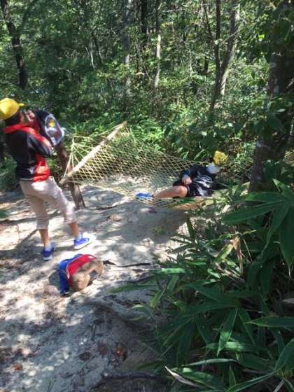 昼食後、ソーセージ作りまでの時間にファーム内を自由に散策しました。ハンモックにのったり、動物と触れ合ったり、ここでしか体験できないことがたくさんありました。