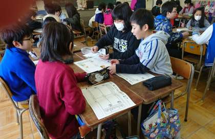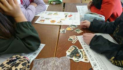 1月31日(火)、5年2組の授業で、栄養教諭の大月先生より「旬について」学習しました。授業の後半、グループに分かれて、「旬の食べ物」カードを、季節に分けて、「旬カレンダー」の作成に取り組みました。
