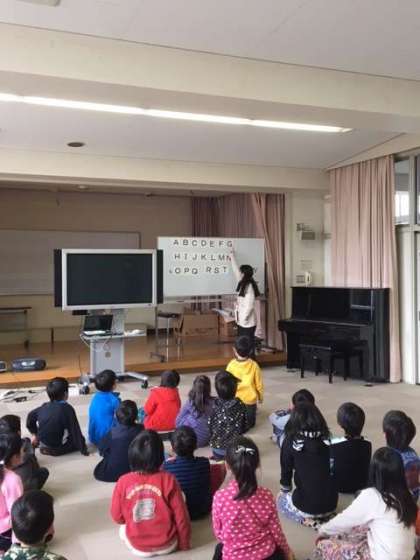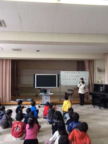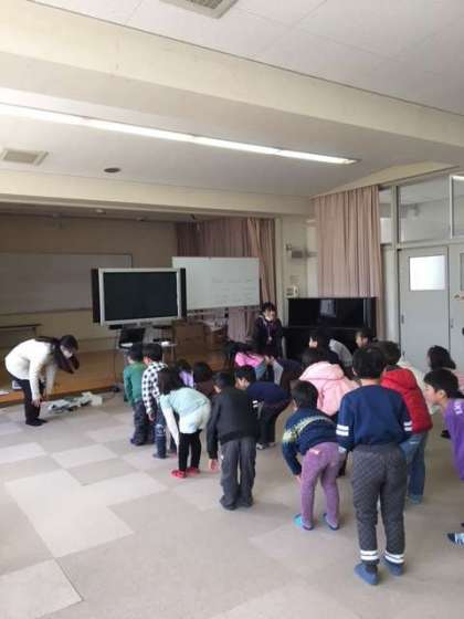 1年生と2年2組が、C-NETのアン先生に英語を教わりました。子どもたちは、体を動かしたり、歌を歌ったりと、楽しみながら英語にふれました。