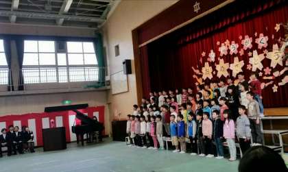 新2年生が「歓迎のもよおし」を発表しました。この日のために、一生懸命練習してきた甲斐あり、大変すばらしい内容でした。2年生の皆さん、ありがとうございました。
