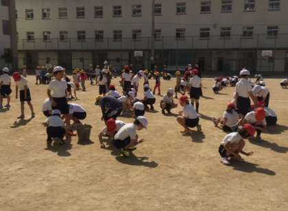 5月8日の児童朝会で、運動場の石ひろいをしました。各学年で担当の場所に分かれて行いました。5月28日の運動会に向けて、本格的な練習に備えて運動場の整備をしました。