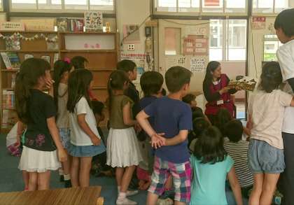 毎週金曜日は、図書館補助員の先生にお越しいただき、図書の貸出し支援や読み聞かせなどをしていただきます。