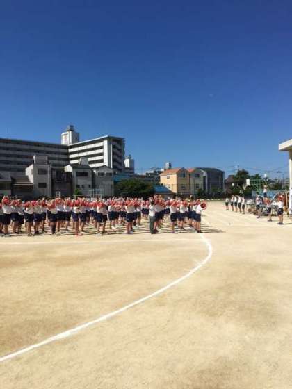5月18日の1時間目に、運動会に向けて全体練習を行いました。前半は開会式の練習で、入場行進や誓いの言葉などを練習しました。全学年がそろっての練習ははじめてでしたが、子どもたちは元気いっぱいに取り組みました。