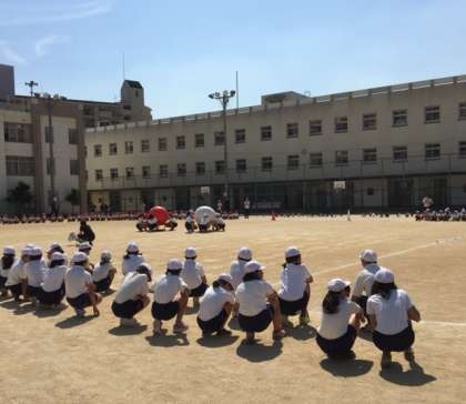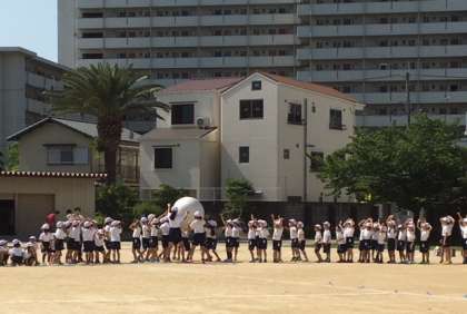 5月22日(月)の1時間目に、2回目の全体練習を行いました。今回は開会式・閉会式と全校競技の大玉送りの練習をしました。