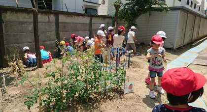 学習園で、1年生がダンゴ虫の生態を観察していました。さらに、ダンゴ虫のすみかを作ったボックスに、ダンゴ虫を放して教室で観察を続けるようです。