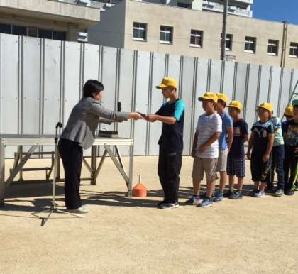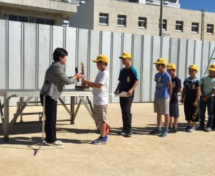 6月5日の児童朝会で、「和」のソフトボールチームの表彰を行いました。第1回開明新人大会で準優勝に輝きました。また、4年生の児童が優秀選手賞に選ばれました。