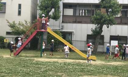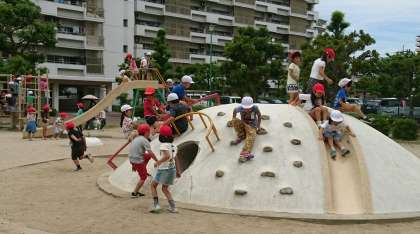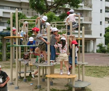 まずは「山公園」。ジャングル・ジムや山の形をしたすべり台など、いろいろな遊具があって、みんな遊ぶのに夢中でした。