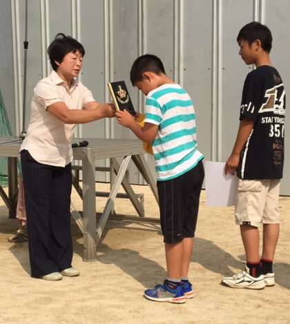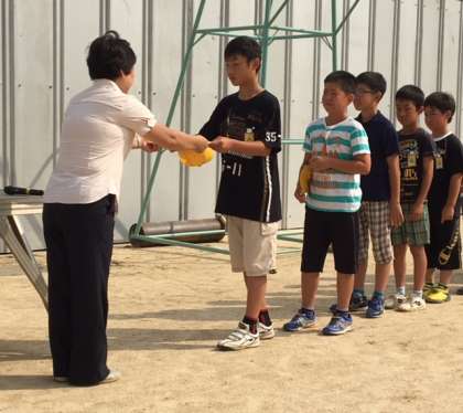 7月3日(月)の児童朝会で、井高野ソフトボールチーム「和」に表彰を行いました。第44回子供会親善各地区対抗小学生ソフトボール大会で、見事、3位の成績をおさめました。