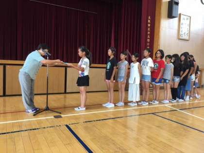 7月20日の1時間目に、終業式を行いました。まず、キックベースボールチームと図書の貸し出しの表彰状の伝達をしました。