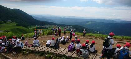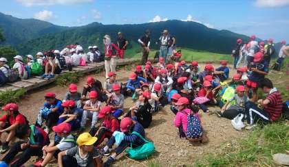 高丸山山頂に、全員到着しました。山頂からの景色に圧倒されました。氷ノ山や鉢伏山などがくっきり見えました。