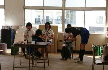文化部の体験では、科学部・美術部・吹奏楽部・太鼓部がありました。
