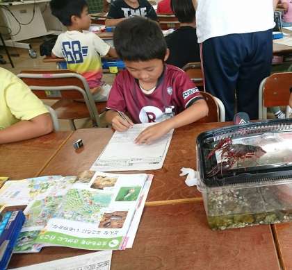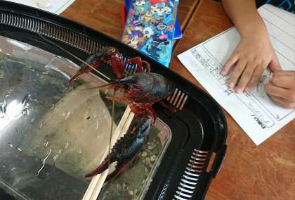 ケースから出して、スケッチをしました。じっとしていないので、ときどき定位置にもどします。そのたびに大きなハサミを広げてジタバタします。