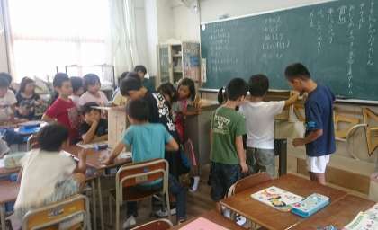 2年生の「せいかつ」の授業で「動くおもちゃづくり」に取り組んでいます。ダンボールなどを活用して、いろいろなおもしろい「動くおもちゃ」を工夫して作ることができます。