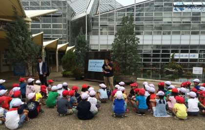 鶴見緑地公園の中にある「咲くやこの花館」に向かいました。まずは、見学の説明を聞いて、いよいよ見学開始です。
