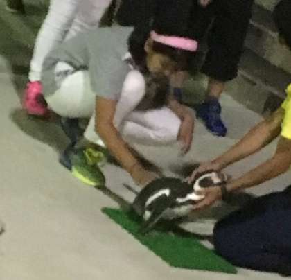ペンギンタッチを体験しました。フンボルトペンギンのロコちゃんに触れました。