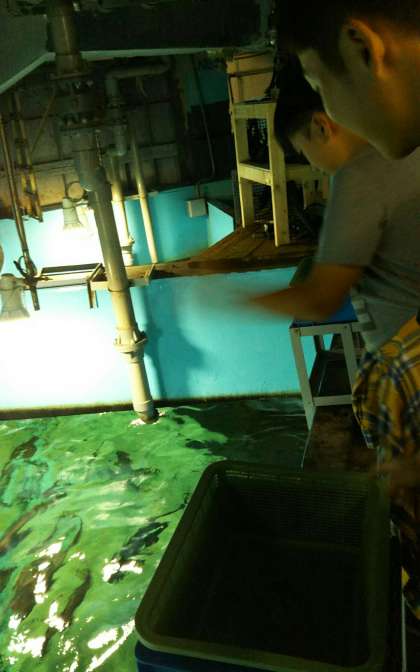 夜間の見学に行きました。入り口のマンボウが出迎えてくれました。