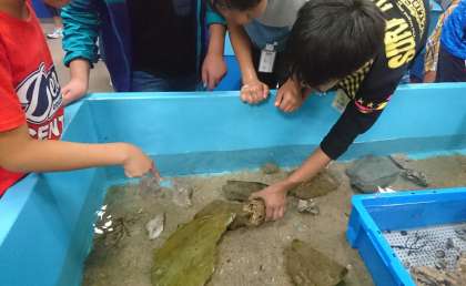 体験コ—ナ—では、ドクターフィッシュの感触、エイ、カニなどを触ることができます。