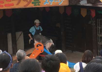 ショ—の主役は、まず雌のバジルちゃん。そして、雄のペッパーくんは、いろんな芸を披露してくれました。ハ—ドル、サッカー、滑り台など上手にやりました。