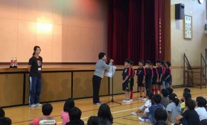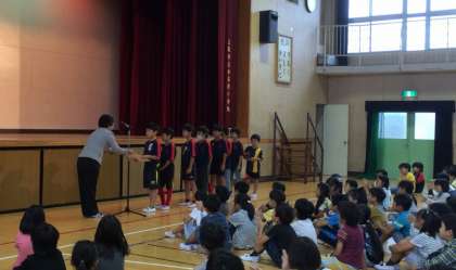 10月2日(月)の児童朝会で、「和」のサッカーチームの表彰を行いました。1日(日)に第2回大阪市スポーツ少年団フットサル大会がありました。