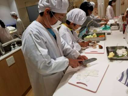 調理実習では、野菜炒め、お味噌汁、ごはん、ふりかけを作りました。どの班も協力して美味しく作ることができました。