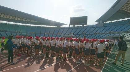 11月9日(木)、6年生は大阪市小学校スポーツ交歓会に参加しました。スポーツ交歓会は長居陸上競技場で行われ、「100m走」「400mリレー」「ドッジボール」「サッカー」に出場しました。