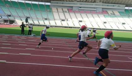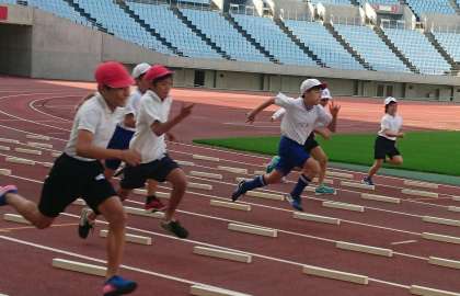 陸上競技の最初は、100m走です。長居競技場のメインスタジアムのトラックはとても走りやすくて、みんな好タイムが出たのではないでしょうか。