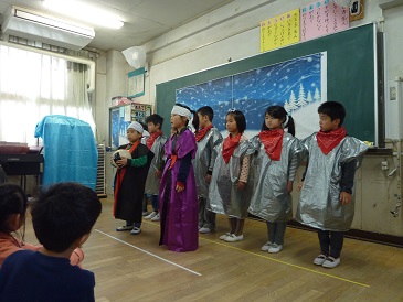 2年生の発表は、劇「かさじぞう」。登場人物の雰囲気がとても上手く表現できて、しんみりとした温かさが伝わる発表でした。子どもたちのパフォーマンスもよかったですね。