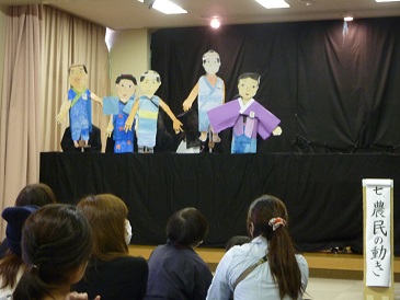 6年生は、内容の濃い人形劇に挑戦しました。「自由を求めて」というテーマで、近世から近代にわたる歴史を表現しました。人形を操ることの難しさを乗り越え、45分の大作を完成させました。