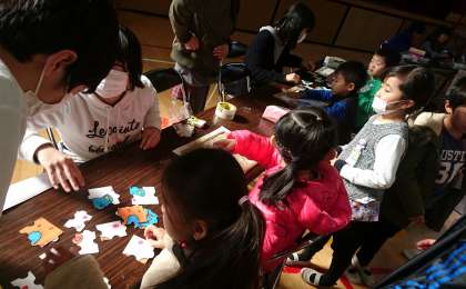 12月7日(木)に6年2組の子どもたちがいろいろな遊びやゲームを企画して、1年2組の子どもたちを招待し、いっしょに遊ぶ時間をもちました。1年生は手作りのおもちゃで遊んだり、ゲームをしてもらったり、大喜びでした。6年生のお兄さん、お姉さんたちのやさしい笑顔もとてもよかったです。