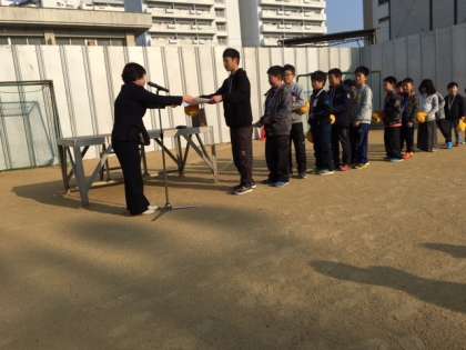 2月26日(月)の児童朝会で、表彰状の伝達を行いました。「和」のソフトボールチームが「第9回東淀川杯 Aチームの部」にて、第3位の表彰を受けました。