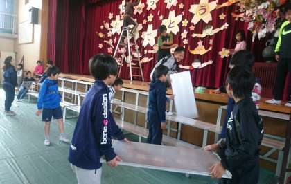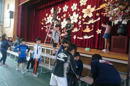 4月5日(木)。明日は平成30年度入学式を迎えます。今日は、朝から、新6年生が入学式の会場準備をしました。さすが、最上級生になる6年生たちのおかげで、スムーズに準備ができました。