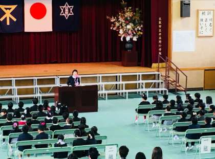 式の中、校長先生の話、PTA会長さまの祝辞を、新1年生はしっかり聞いていました。