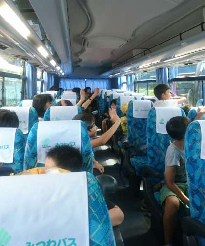 バスの中では、子どもたちのバスレクで盛り上がっています。