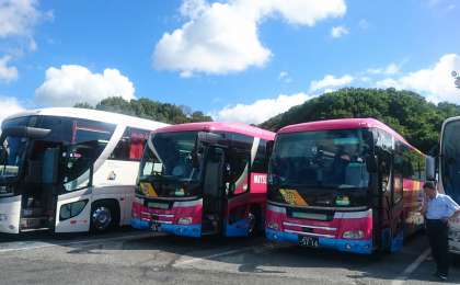 バスは、予定通り進んでいます。最初の休憩場所、赤松SAでは、他の学校の林間バスとも何台か行き合わせました。