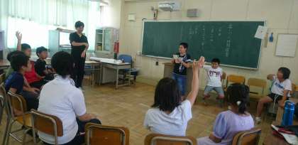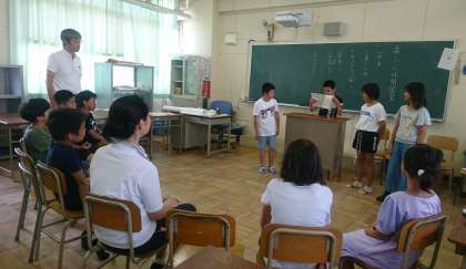 聞き手の4年生は、クイズに答えたり、質問をしたり、一生懸命聞いていました。