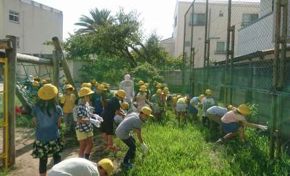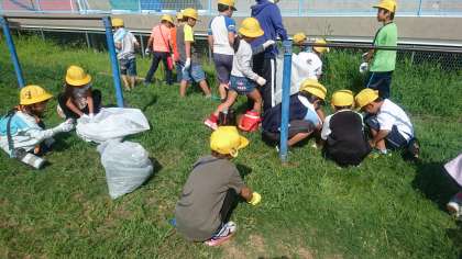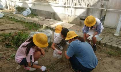 8月30日(木)の1時間目、学期当初の校内美化活動を実施しました。各学年がそれぞれの区域を分担して、運動場や校舎の裏側の草抜きに取りかかりました。夏を過ごした雑草の量はとても多く、子どもたちはみんな汗だくになって働きました。