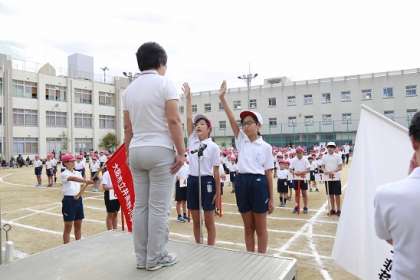 開会式では、児童会代表の力強い宣誓が印象的でした。