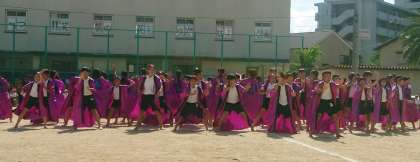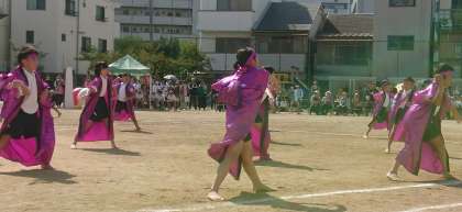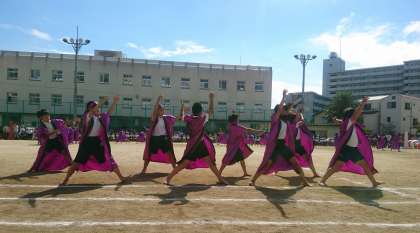 5年生の団体演技、「井高野ソーラン」。たくさん練習を重ねてきました。力強い動き、迫力にあふれてジーンときました。衣装も素晴らしかったです。