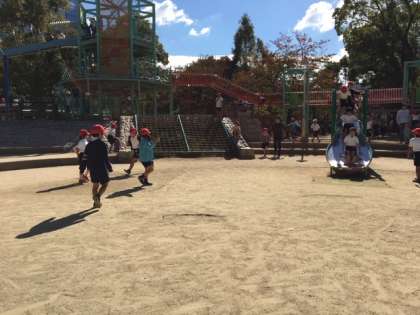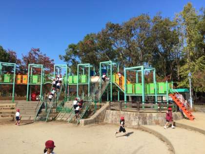 11月1日(木)、1・2年生が秋の遠足で大阪城公園に行きました。着いてすぐに公園があり、遊具で目一杯遊びました。