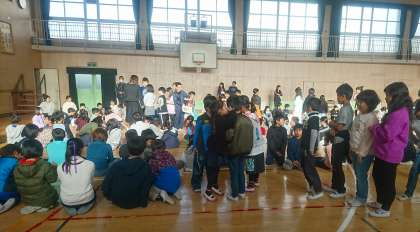 11月29日(木)朝の児童集会で、集会委員会による伝言ゲームをしました。各班
