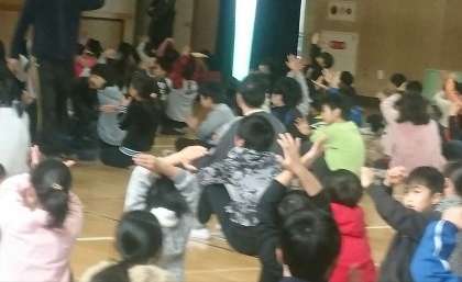 12月20日(木)の朝の児童集会は、運動委員会による〇×クイズでした。運動委員会からの質問に、みんなは○か×かを表現します。