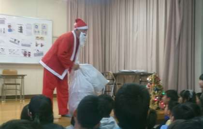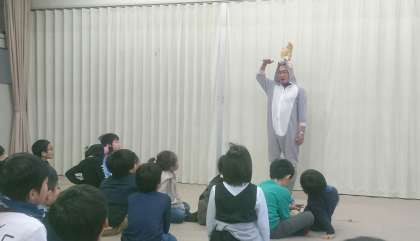 クリスマス会の催し物がそろそろ終わりに近づいたとき、「トナチュウ」が現れました。トナカイでもなく、ネズミでもない「トナチュウ」は、子どもたちの願いをサンタさんに伝えに行きました。サンタさん、来てくれました!